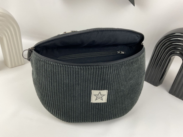 Cousue à la main en micro-série, elle se porte uniquement en bandoulière, avec une sangle réglable pour s’adapter à chaque morphologie.
