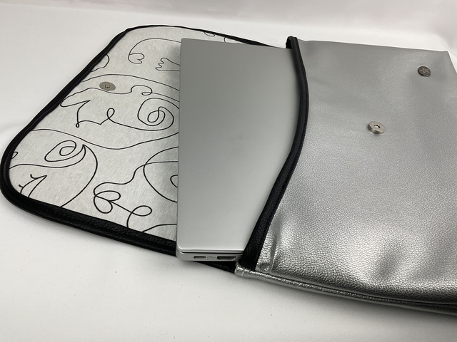 Housse ordinateur – Argent & Noir texture serpent