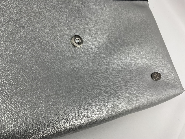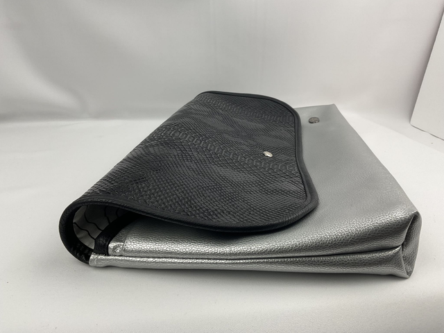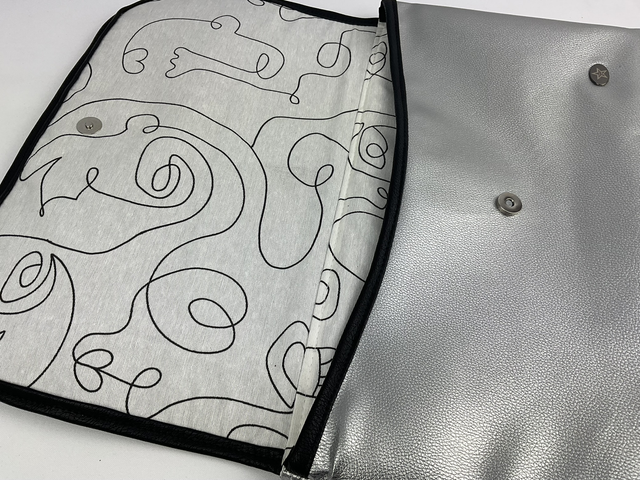 Housse chic et pratique réalisée en micro-série dans l’esprit Esprit Lovi. L’extérieur en simili argent et noir effet serpent apporte du caractère ; l’intérieur en coton enduit assure une finition propre et résistante.