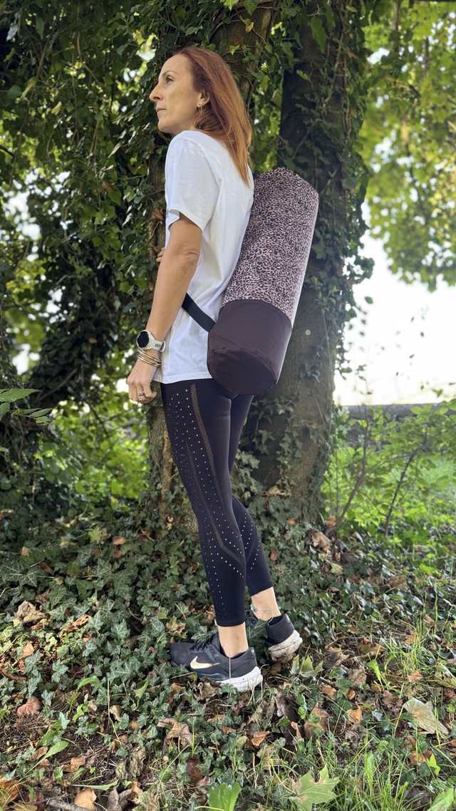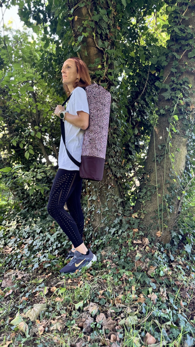 Sac pour tapis de fitness imperméable – motif léopard rose violine & noir (sans poche)