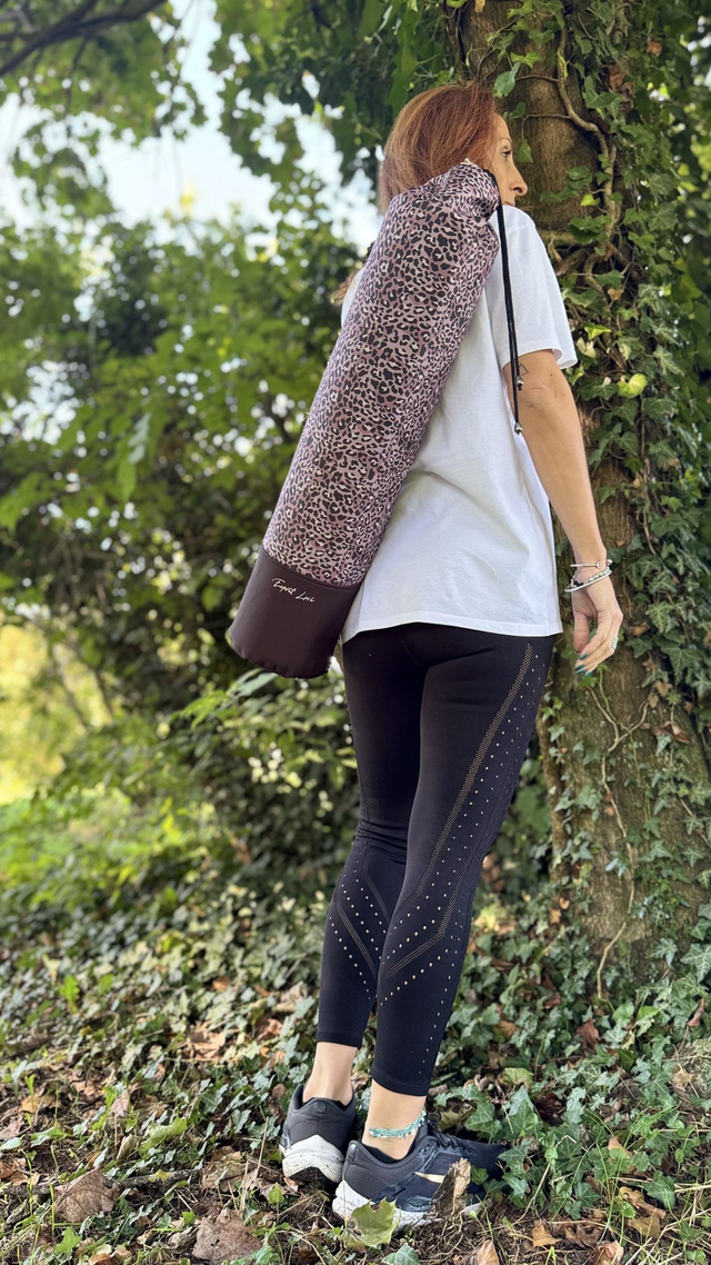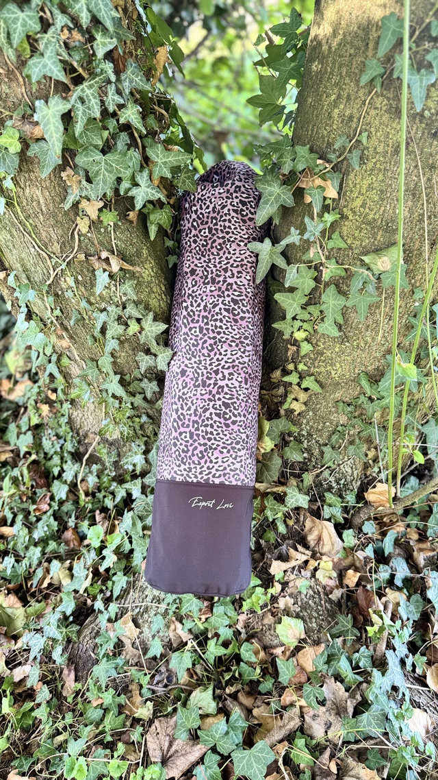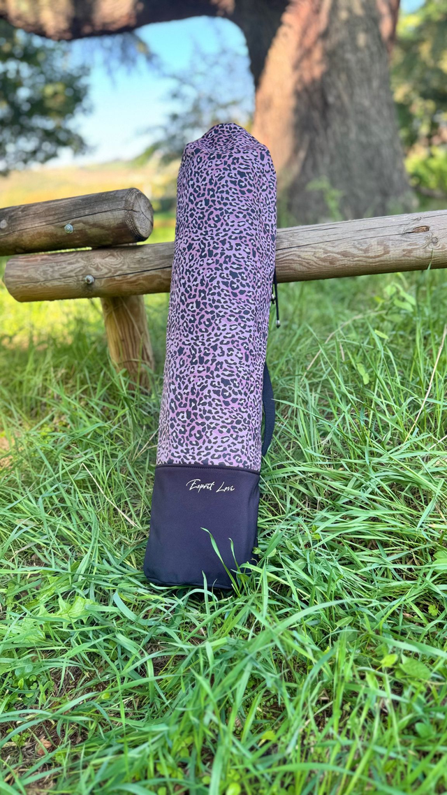 Sac pour tapis de fitness imperméable – motif léopard rose violine & noir (sans poche) ⚡